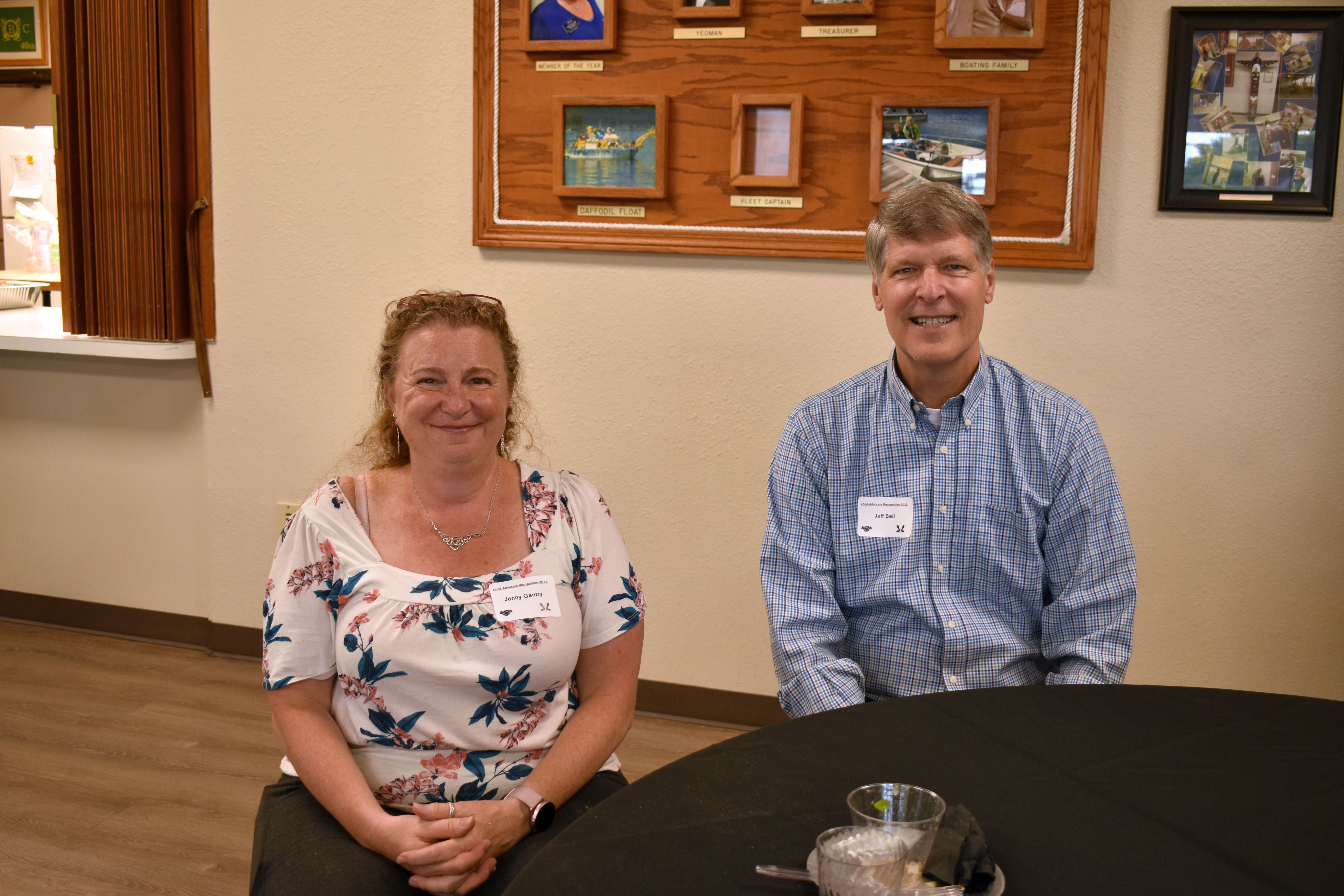KidConnect member Jenny Kenyon Gentry was active in publicity and management of the celebration. She is pictured here alongside Child Advocate Jeff Bell.